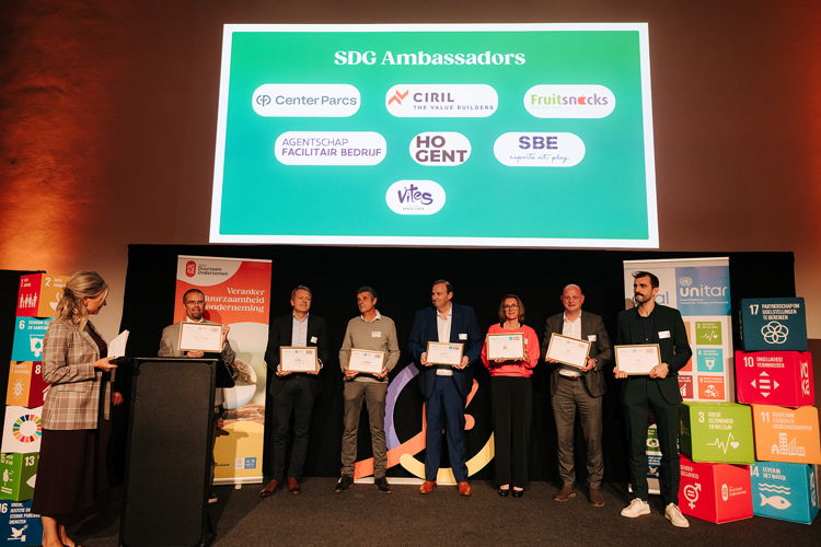 Ondernemingen die op vlak van duurzaamheid een voorbeeldrol opnemen binnen de hele waardeketen en daarvan een internationale jury kunnen overtuigen, mogen zich tenslotte opwerpen als een SDG Ambassador. Twee jaar geleden zijn de eerste Vlaamse SDG Ambassadors bekroond. Met SBE uit Sint-Niklaas is er dit jaar voor het eerst een bedrijf uit onze Antwerps-Wase regio in geslaagd om dit prestigieuze certificaat binnen te halen. Hiervoor heeft SBE bijvoorbeeld gewerkt aan een project voor de ontwikkeling van zelfvoorzienende tiny houses in Ethiopië.